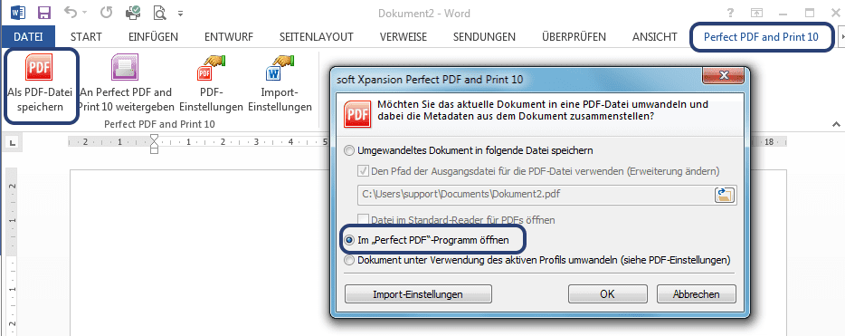 Word in PDF umwandeln - unter Anwendung des Perfect PDF® Plugins